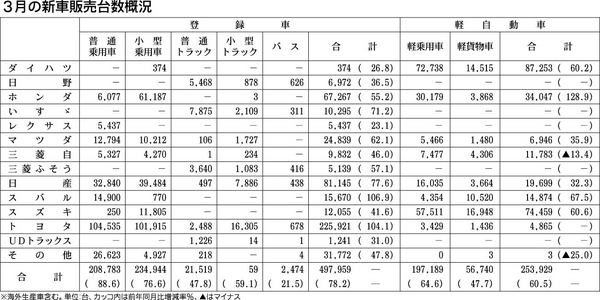 【3月の新車販売台数概況】