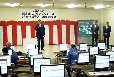 JU山梨 関連協リレー&共有セリ機導入記念AA 出品154台、成約103台を獲得、全国から活発なコール
