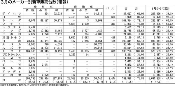 【3月のメーカー別新車販売台数(確報)】