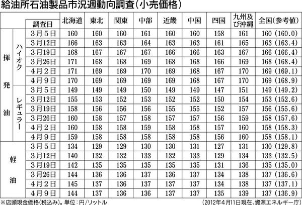 【給油所石油製品市況週動向調査(小売価格)】