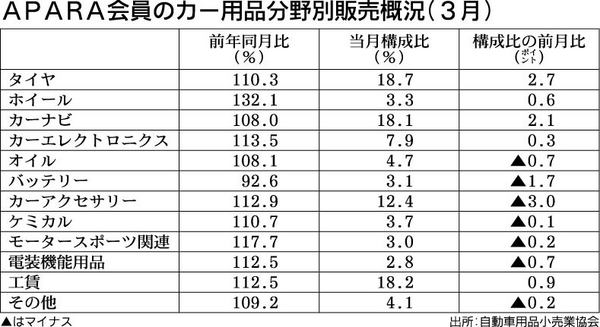〈用品トレンド〉3月のカー用品売上動向、タイヤ・ナビ好調