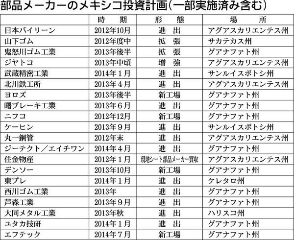 欧米系との取引拡大も 部品メーカー各社が相次いでメキシコへの工場進出を表明している。同国では日産自動車が現地生産能力を大幅に拡大するほか、ホンダが新工場を建設する。マツダも進出計画を表明しており、メーカーを追いかける形で部品メーカーのメキ...