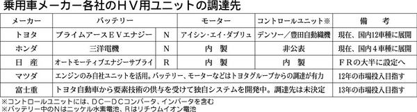 ハイブリッド車(HV)の普及に合わせ、部品メーカーにHV専用部品の受注拡大の機会が巡って来そうだ。HVではトヨタ自動車、ホンダが先行してきたが、11月2日に日産自動車が独自開発のHV「フーガハイブリッド」を発売。12年には富士重工業、13...