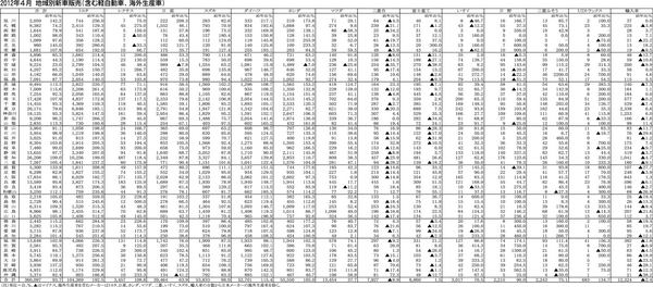 【2012年4月 地域別新車販売(含む軽自動車、海外生産者)】