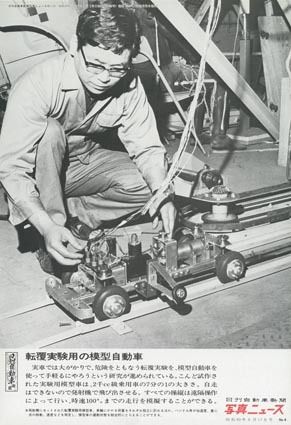 コンピューターの能力がまだ乏しかった時代、実験や検証の多くは模型や実物頼みだった。写真の自動車は、実車の1/7スケールで、転覆実験用に製作されたという。各車輪にかかる荷重を個別に計測できるほか、ステアリング角度や加速度、速度、重心点の移動...