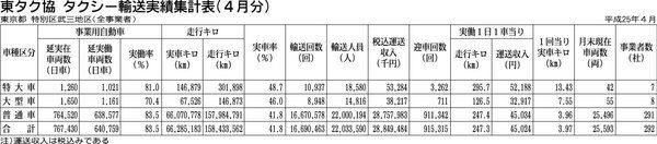 【東タク協 タクシー輸送実績集計表(4月分)】