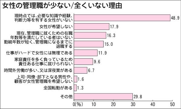 政府は21日、「男女共同参画白書」を閣議決定した。安倍晋三首相が成長戦略のキーワードに掲げた「女性の活躍」を詳述。民間企業などでの女性管理職の割合は11・1%と、諸外国と比べて低水準にとどまっている現状を紹介し、改善のため女性管理職の登用...