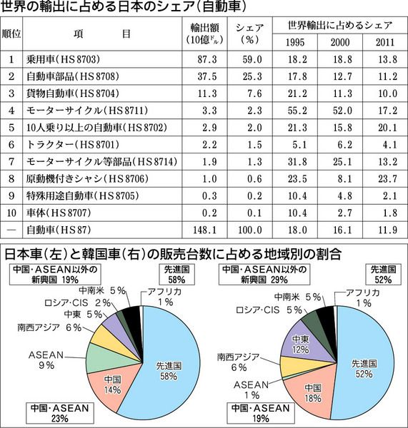 政府が25日閣議決定した「通商白書」では、世界の輸出額に占める日本のシェアが緩やかに低下していることに警鐘を鳴らした。乗用車でも日本のシェアが低下する一方でドイツと韓国のシェアが増加した。白書は、日本の競争力低下を防ぐには日本企業が海外進...