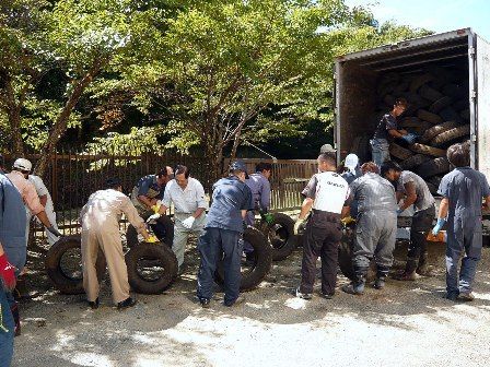 山梨県/山梨県カーリサイクル協同組合/富士山クラブ、廃タイヤ延べ2133本を鳴沢村の山林内から撤去