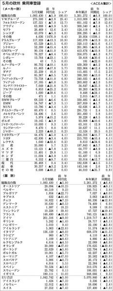 【5月の欧州 乗用車登録】