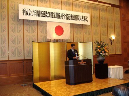 【大阪】近畿運輸局は6日、大阪市内のホテルで陸運や観光事業の発展に貢献した功労者を表彰する「平成24年度(第41回)陸運及び観光関係功労者近畿運輸局長表彰」の表彰式を行った。ホテル、旅館、旅行、鉄道の各業界から5人。タクシー、トラック、自...
