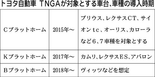 トヨタ自動車が推進する「トヨタ・ニュー・グローバル・アーキテクチャー」(TNGA)。開発、調達などの各分野でTNGAに基づいて業務手法を抜本的に見直すことを視野に入れており、部品メーカーも事業体制の再構築を迫られそうだ。トヨタはTNGAの...