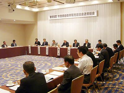 【秋田】秋田県自動車販売店協会は5月30日、秋田キャッスルホテルで「第55期通常総会」を開催した。総会では2011年度の事業・決算報告や12年度の事業計画案・収支予算案などが原案通り承認された。任期満了に伴う役員改選では、三浦廣巳会長をは...