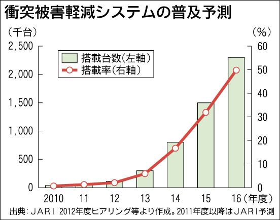 国内の先進緊急ブレーキシステム(AEBS)市場が今後、急激に拡大しそうだ。日本自動車研究所(JARI)によると、2012年度に11万台だったAEBS装着車(乗用車)は15年度に150万台、16年度には200万台を大きく上回り、総販売のほぼ...