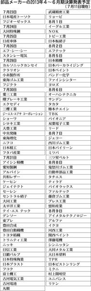 【部品メーカーの2013年4~6月期決算発表予定(7月11日現在)】