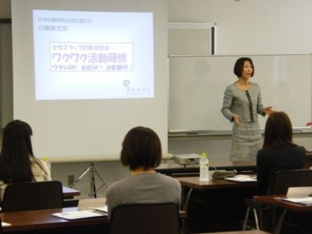 【神戸】日本自動車販売協会連合会兵庫県支部(四宮陸男支部長)はこのほど、神戸市東灘区の兵庫県自動車会館で、会員ディーラーの女子従業員を対象に「ワクワク活動研修」を開いた。14人が参加し、今後も毎月1回実施する計画。合計で4回の研修を通じ、...