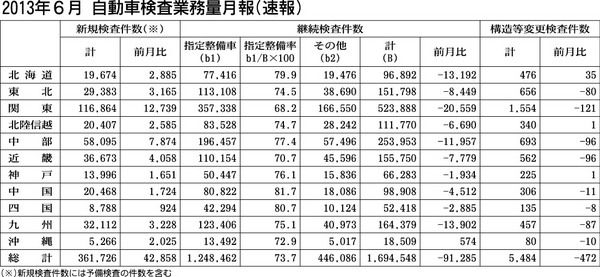 国土交通省は、6月の自動車検査業務量(速報)をまとめた。それによると新規検査件数は前年同月比5万4262件減の36万1726件。継続検査件数は同7万9152件減の169万4548件だった。構造等変更検査件数は同1546件減の5484件。指...