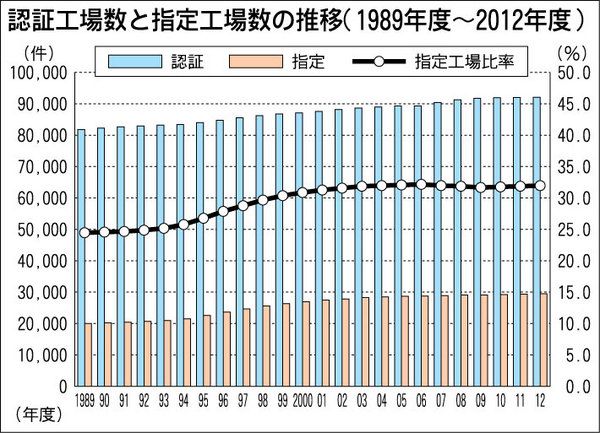 国土交通省は2012年度の「自動車整備事業の認証、優良、指定等に係る集計結果」を発表した。それによると、12年度の認証工場数は前年度11件増の9万2030件、指定整備工場数は同115件増の2万9477件。指定工場比率は同0・1ポイント増の...