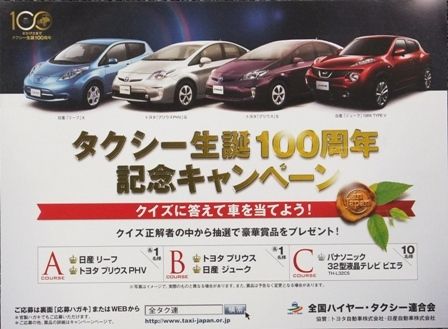 「クイズに答えて車を当てよう!」。全国ハイヤー・タクシー連合会(全タク連、富田昌孝会長)では今年、タクシー生誕100周年を迎えることから、利用者を対象に記念キャンペーンを7月1日から31日までの1カ月間、全国規模で展開する。クイズの問題は...