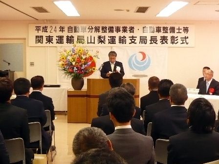 【甲府】関東運輸局山梨運輸支局(石原美千老支局長)は6月26日、笛吹市の同支局で「平成24年優秀自動車分解整備事業者・優良自動車整備士等関東運輸局山梨運輸支局長表彰」を開催した。35人を表彰し、そのたゆまぬ尽力と功績に対し深く敬意を表すと...