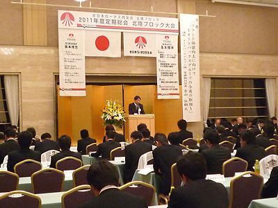 【金沢】全日本ロータス同友会北陸ブロック(三納宏一ブロック長)は6月29日、石川県加賀市内のホテルで北陸ブロック大会を開催した。北陸3県(富山、石川、福井)の会員や提携企業ら138人が出席した。 大会では2011年度の優績賞を本部の室谷会...