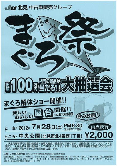 【北見】JU北見青年部(柳瀨良太部会長)が主催するチャリティーイベント「まぐろ祭」が28日土曜日に北見市北4条西1丁目の中央公園で開かれる。 まぐろの解体ショーを実施するほか、屋台が出展してビール飲み放題2千円のチケットを用意。東日本大震...