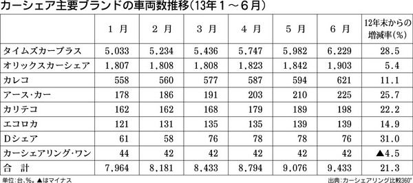 カーシェアリング市場の拡大傾向が続いている。カーシェア情報の比較サイト「カーシェアリング比較360°」(運営=ジェイティップス、川口環代表、東京都渋谷区)は、独自調査に基づく2013年6月末現在のカーシェアリング市場データを発表した。その...