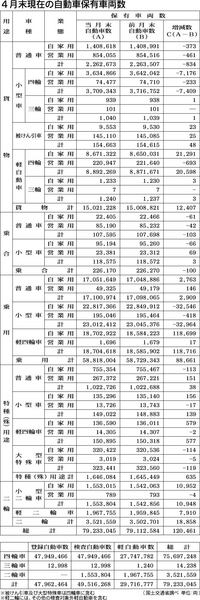 自動車検査登録情報協会(自検協、後藤悦治郎理事長)は2012年4月末時点での国内自動車保有台数をまとめた。前月比12万461台(0・15%)増の7923万3045台だった。2カ月ぶりのプラス。3月までは11カ月連続で増加していたが、年度末...