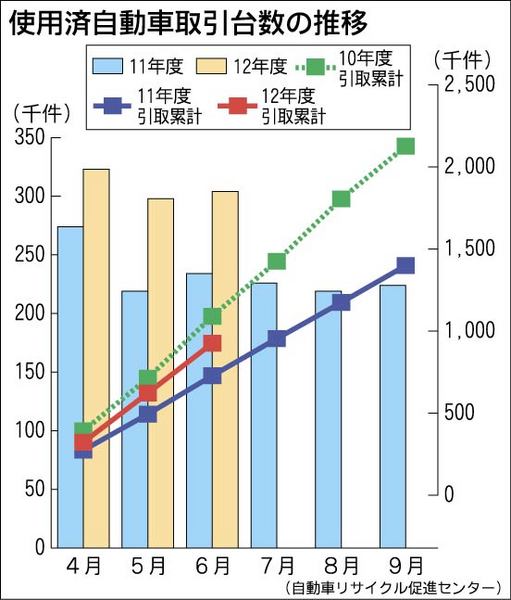 自動車リサイクル促進センター(郡嶌孝理事長)がまとめた2012年度第1四半期(4~6月)の使用済み自動車引取台数は、前年同期比27・1%増の92万6174台だった。東日本大震災の反動増に加え、「エコカー補助金」による下取り車の増加が引取台...