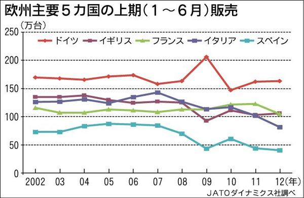 ギリシャを発端とする欧州債務危機の影響で、南欧の新車販売が減速している。欧州主要5カ国(ドイツ、イギリス、フランス、イタリア、スペイン)の上期(1~6月)実績によると、イタリアとスペインの減少に歯止めがかかっていない。南欧との経済の結びつ...