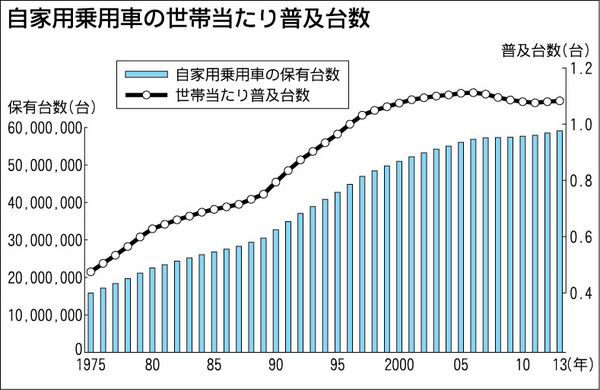 自動車検査登録情報協会(自検協、後藤悦治郎理事長)は12日、2013年3月末現在の1世帯当たりの自家用乗用車(登録車と軽自動車の合計)普及台数を公表した。普及台数は前年比0・003台増の1・083台となり、2年連続で増加した。自検協ではエ...
