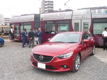 マツダは29日、路面電車と車両の交通事故を防止する先進安全運転システムを搭載した「アテンザASV―5」の公道実証実験を広島市中区で公開した。 同システムは同社と東京大学、広島電鉄、交通安全環境研究所の共同研究体で開発を進め、今回の実証実験...