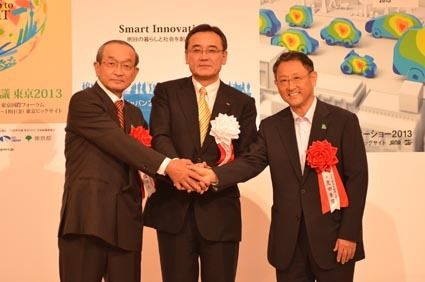 日本自動車工業会の豊田章男会長とITSジャパンの渡邉浩之会長は1日、千葉市幕張メッセで開幕したCEATEC JAPAN(シーテック・ジャパン)のオープニングレセプションに参加し、東京モーターショーとITS世界会議を加えた3イベントの連携を...