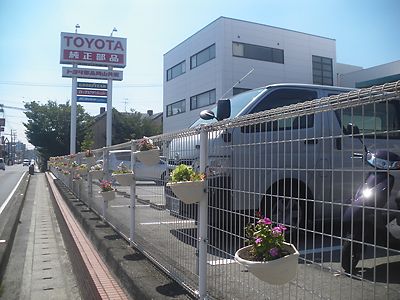 トヨタ部品岡山共販、壁面に花鉢を設置