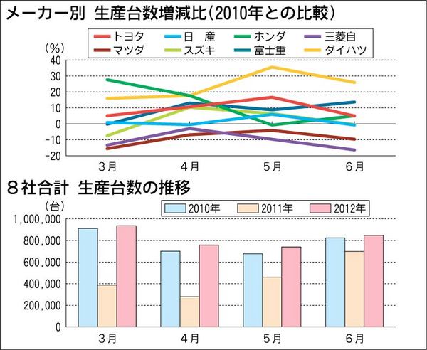 国内生産の好調が続いている。前年同月実績との比較では、主要8社合計で3月が141・6%増、4月が171・2%増といずれも2倍以上。5月は60・8%増で、6月は21・2%増となっている。こうした前年実績との比較では、東日本大震災の影響を考慮...