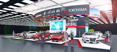 横浜ゴムは8月29日~9月9日までロシアのモスクワ市で開催される「モスクワ国際オートモービルサロン2012」に出展すると発表したはブースイメージ。ハイパフォーマンスの「アドバン」や高い環境性能を持つ「ブルーアース」、スタッドレスの「アイス...