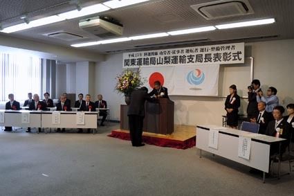 【甲府】山梨運輸支局(石原美千老支局長)は9日、笛吹市の自動車総合会館で「2013年陸運関係功労者・従事者、運転者、運行・整備管理者関東運輸局山梨運輸支局長表彰式」を開催した。その中で功労者10人ら陸運関係事業の発展に多大な功績があったと...