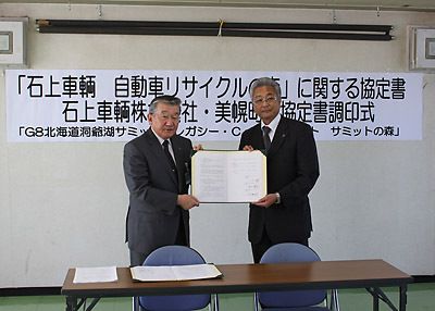 【美幌】石上車輌(石上剛社長)は、美幌町の植林事業に協力する協定書に調印した。荒れた丘陵にカラマツの苗木を植え、「自動車リサイクルの森」として育てる。同社の取り組みに賛同する企業・団体を含め合計5744本を植栽する予定。調印は今年度で5年...