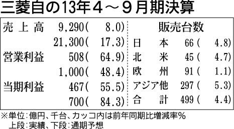 三菱自動車は29日、2013年4~9月期の連結業績を発表した。売上高は当初見込みを下回ったものの、日本、北米、欧州、アジアその他の地域すべてにおいて販売台数が前年同期を上回ったことなどから、前年同期比8・0%増の9290億円と増収に転じた...