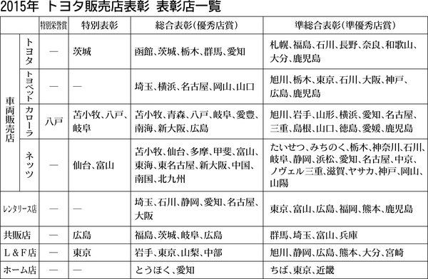 【2015年 トヨタ販売店表彰 表彰店一覧】