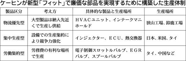 ケーヒンは廉価な部品を供給するグローバルな生産体制を構築し、新型「フィット」の部品から適用を始めた。カーエアコン用ユニットをはじめとした10品目余りの製品を「物流優先型」「集中生産型」「労働集約型」の3つに区分し、それぞれの製品特性に合わ...