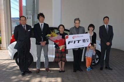 ホンダカーズ愛知(大高健司社長)は、同社のモバイルサイト「@ichi・com(アイチドットコム)」の会員の中から抽選で1人に新型「フィット」をプレゼントした。10月27日に名古屋市守山区の守山小幡店で贈呈式を行い、当選した名古屋市の竹部誓...