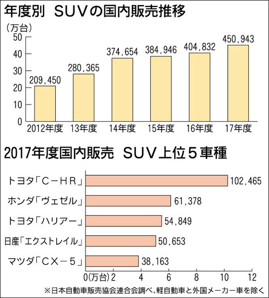 勢い衰えぬ国内SUV市場、5年で2倍の成長