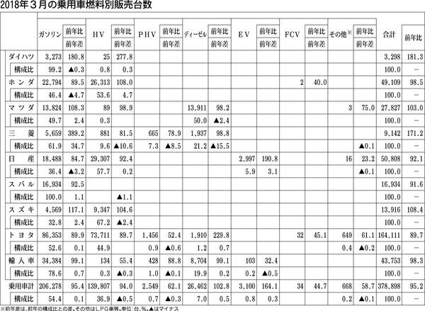 日本自動車販売協会連合会がまとめた3月の乗用車燃料別販売台数によると、クリーンディーゼルと電気自動車(EV)が前年同月実績を上回った一方、ガソリン車、ハイブリッド車(HV)、プラグインハイブリッド車(PHV)、燃料電池車(FCV)がマイナ...
