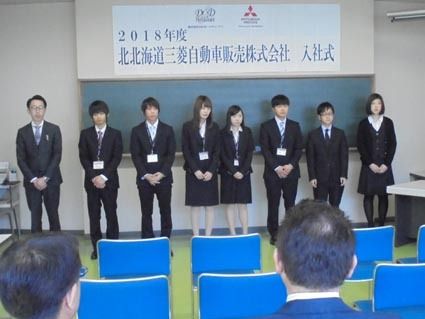 【旭川】北北海道三菱(村脇学社長)はこのほど入社式を開催し、同社として初めての新卒社員を迎えいれた。営業スタッフ4人、サービススタッフ2人、業務スタッフ2人の計8人の入社を役員一同で歓迎した。 同社は昨年10月に発足。村脇社長は「今年は新...