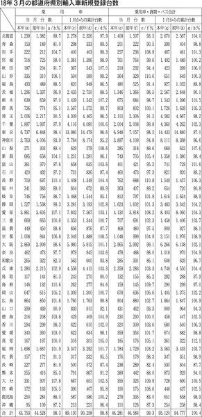 2018年3月の都道府県別輸入車新規登録台数は、全体が前年同月比0・7%減とほぼ横ばいで、半数以上が前年実績を割り込んだ。伸び率が大きかったのは長野(同10・8%増)、山形(同10・6%増)、大分(同9・9%増)など。これに対し長崎(同1...