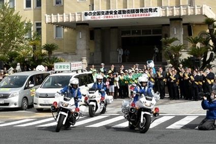 【和歌山】春の全国交通安全運動がスタートした6日、和歌山県でも県庁前に「和歌山県・交通事故をなくする県民運動推進協議会」に所属する行政機関や団体の関係者が集まり、県警の白バイ隊らの街頭啓発への出発を見送った。 和歌山県の2017年中の交通...