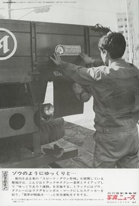 「ゆっくり走ろう!○○路を」―。こんなステッカーが全国的に流行した時代があった。クルマの後部に貼り付けたこのステッカーは、安全運転の心がけを呼びかけの役割を果たすとともに、自らによる励行の宣言でもあった。写真は、こうした流行の直前。警視庁...