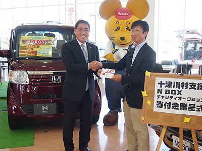 【奈良】ホンダネットナラ(島田順弘社長、奈良市)は9月28日、ホンダカーズ奈良中央オートモール橿原店(橿原市)で、「十津川村支援チャリティオークション」(8月)で得た寄付金の贈呈式を行った。 同オークションは新車、中古車、用品販売の複合施...