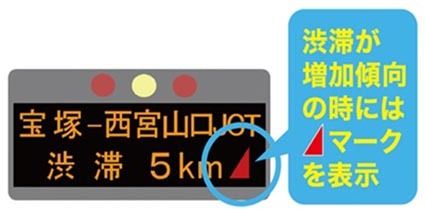 高速道路の情報板に加わった新しいマークはご存知だろうか。東日本、中日本、西日本のNEXCO各社は、渋滞情報を表示する電光掲示板に新機能の追加を始めた。渋滞の長さを示す距離の横にある、右上がりの赤い直角三角形がそれだ。 このマークは、渋滞長...